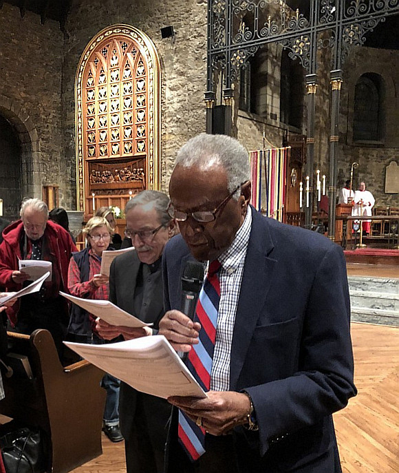 King Holiday Essay — 2018 Jan 15 Download a PDF of Vern's 2-page summary of the genius of the spiritual approach of Martin Luther King Jr by clicking this link. #candlemasgig Candlemas 2018 Feb 2 Fri 7pm — honoring many faiths :: A complimentary reception hosted by the Central Seminary :: An exhibition of art in the rare Saint John's Bible :: Organ pieces performed by Paul Meier on the Gabriel Kney Pipe Organ :: The Sacred Arts Chorale performing the complete Missa Pange Lingua by Josquin des Prez (1450?–1521) -- Kyrie, Gloria | Credo, Sanctus, Agnus Dei :: Guitar, ud, and other music performed by Beau Bledsoe :: Poetry from Wm Shakespeare, George Herbert, John Donne, T S Eliot, W H Auden, and Vern Barnet, with actor Eddie Straub, with the assembly led by Alvin Brooks in the concluding reading. :: Of course, the full candle-lighting ceremony, incense, asperges  The Hon. Alvin Brooks leads the assembly in speaking together the concluding poem by W H Auden at a special Candlemas at the Episcopal Cathedral honoring many faiths and the hopes of humankind everywhere. CLICK ON THE BURNING CANDLES or HERE FOR A FULL REPORT Evolution Weekend 2018 Feb 9-11— report pending  What